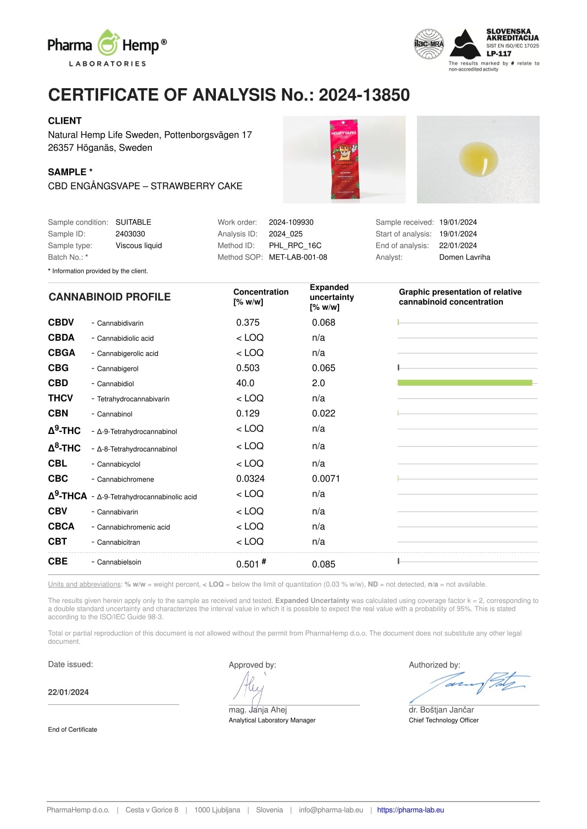 Til vores engangsvapes bruger vi som vanligt vores meget letoptagelige og populære CBD-ekstrakt med et bredt spektrum af ikke kun CBD, men også en række andre cannabinoider såsom CBG, CBDA og CBN. Naturligvis er ekstraktet garanteret fuldstændigt fri for THC.